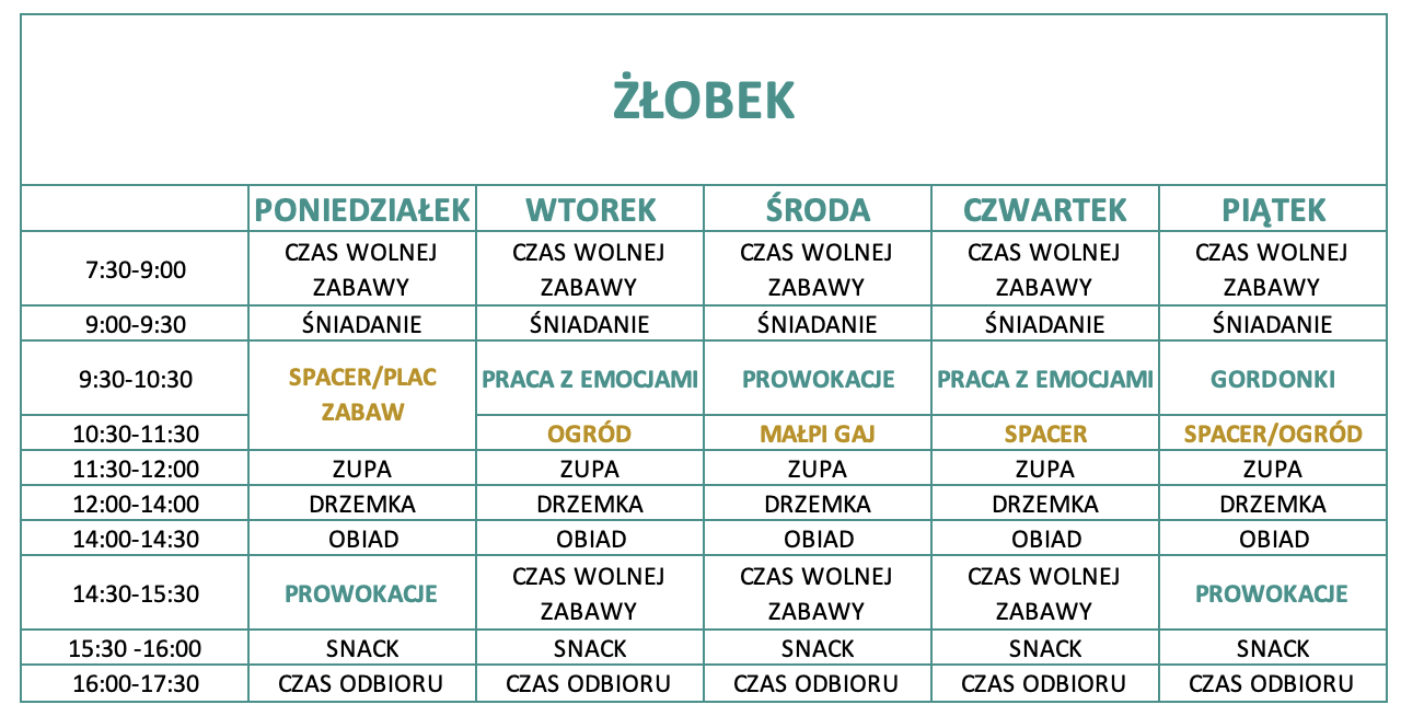 Nasz żłobek jest otwarty od 7:30 do 17:30.